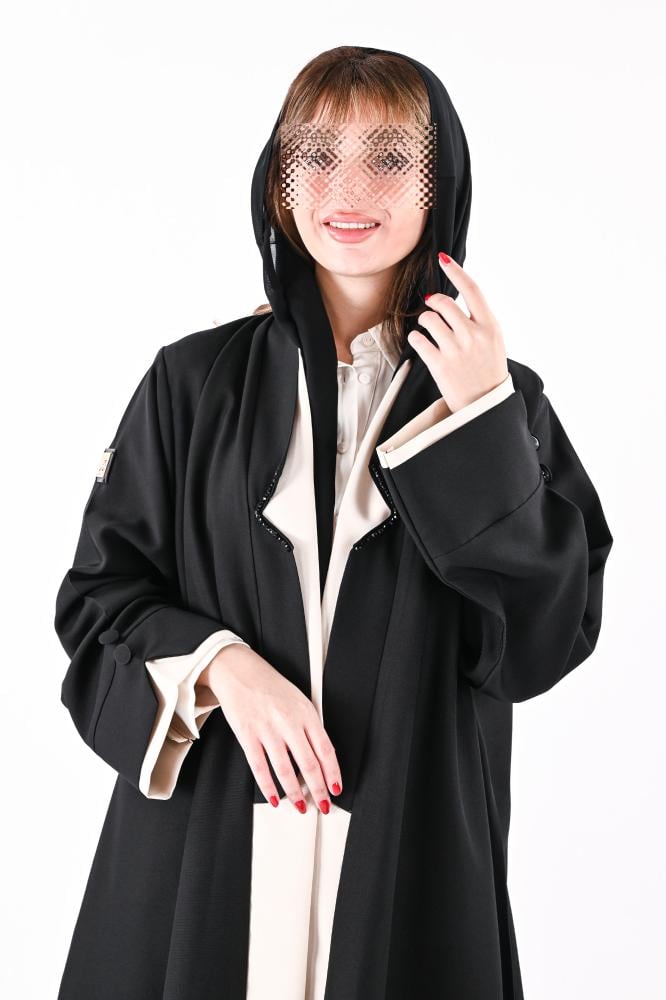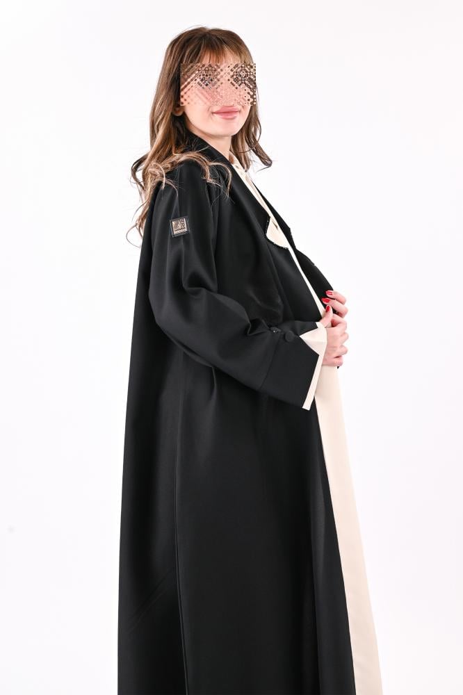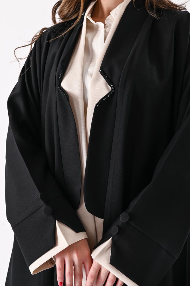 - الإضافات : قلاب وخرز باللون الأسود مع ازارير على الأكمام.