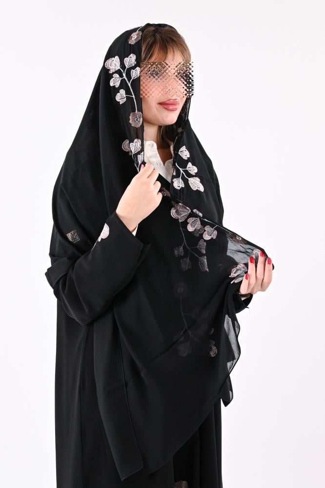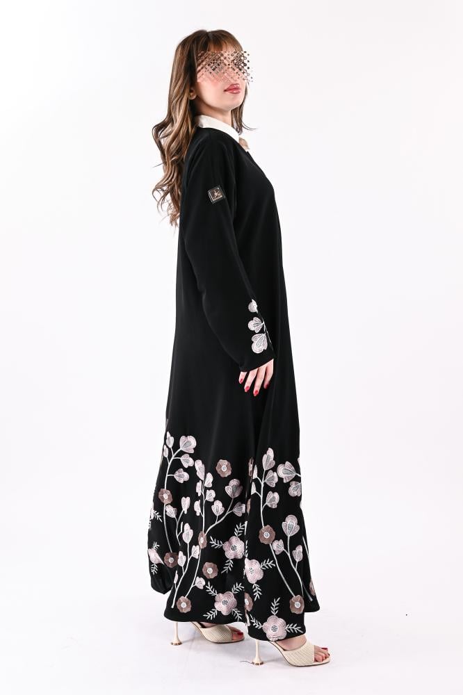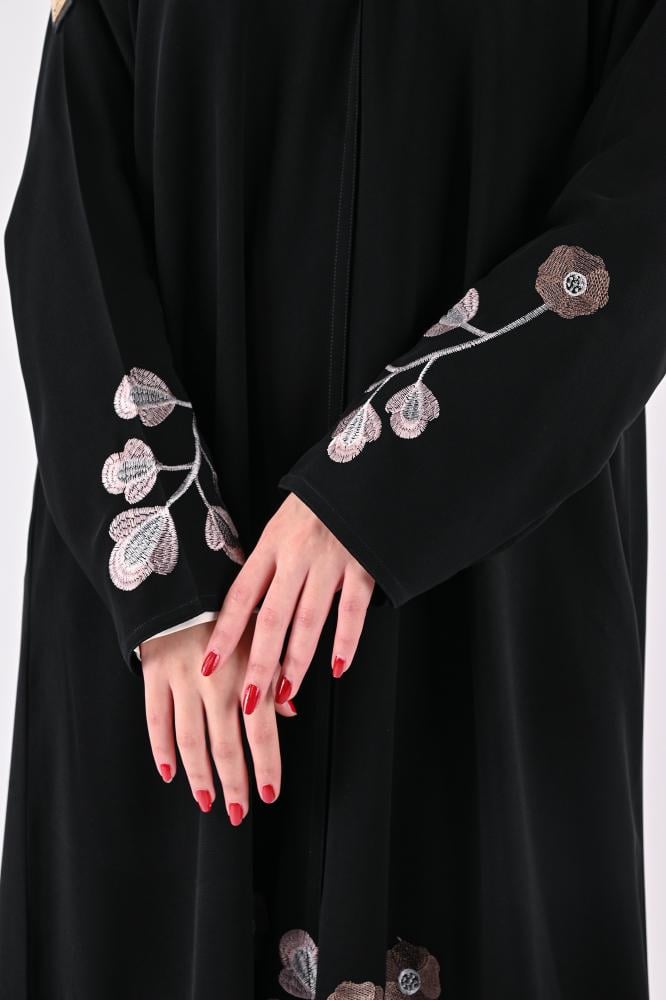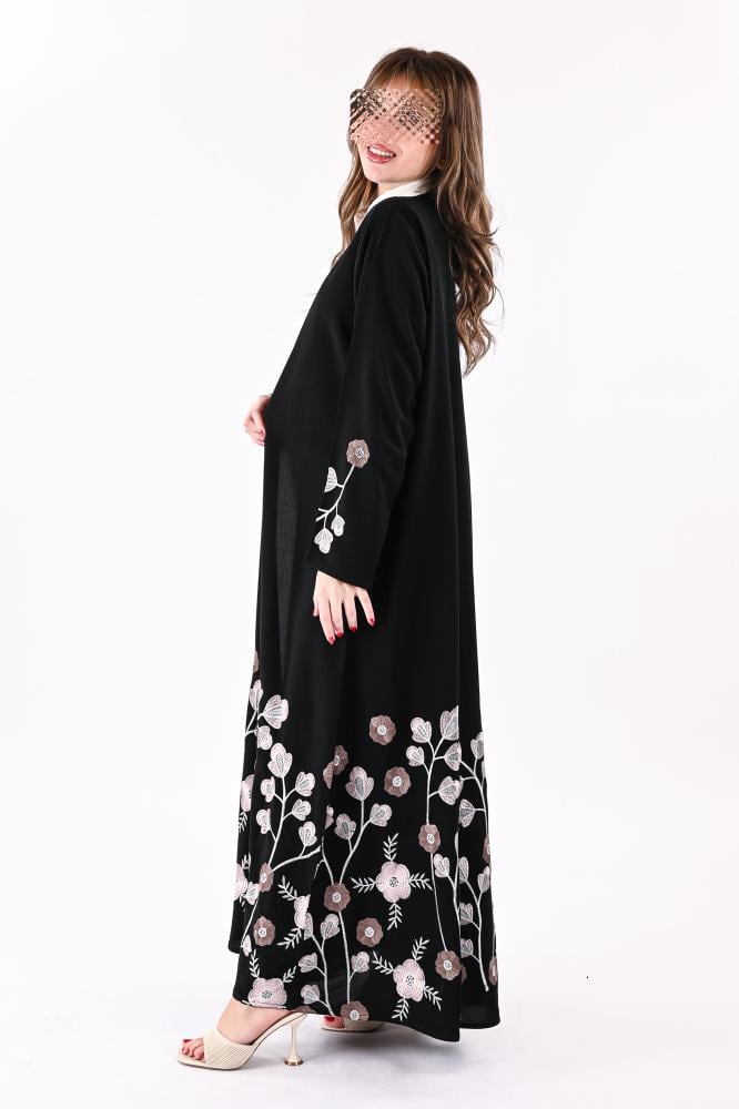 - الإضافات : تطريز ورد ملون على الاكمام وأسفل العباية