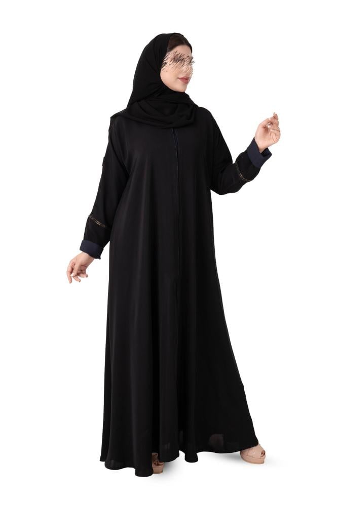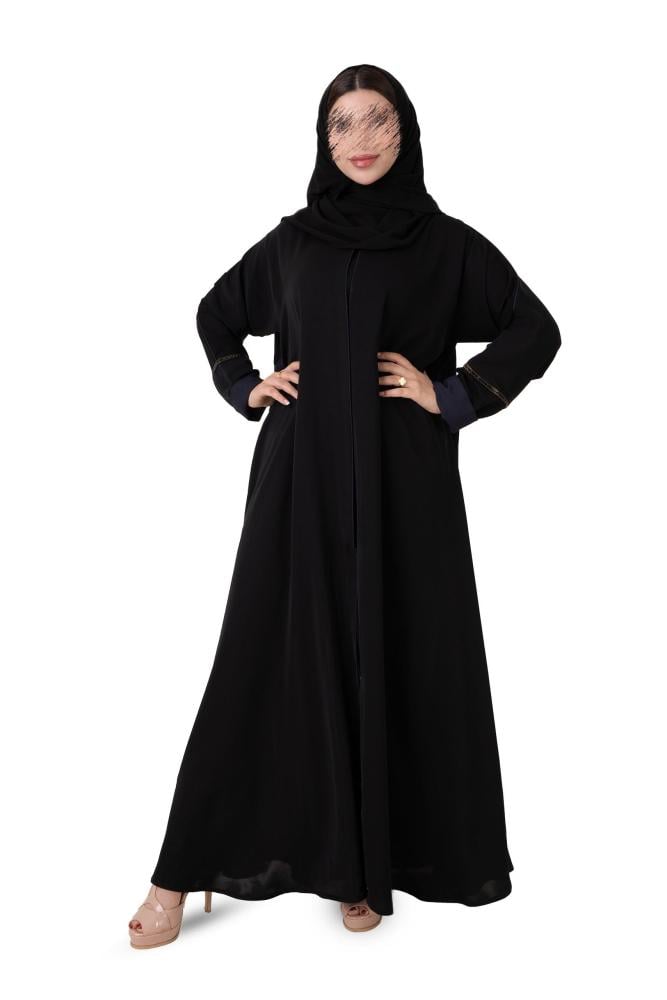 عباية بلاك بيري كلوش بتصميم راقي يجمع بين البساطة والفخامة لطلة انثوية ورقيقة. العباية مطرزة بكلفة ناعمة. كم العباية صغير يأتي باللون الكحلي.