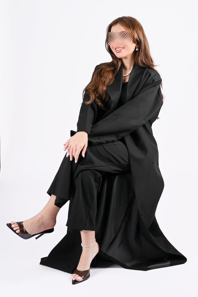 • الإضافات : تطريز يدوي منثور اسود وجيوب مخفية.
