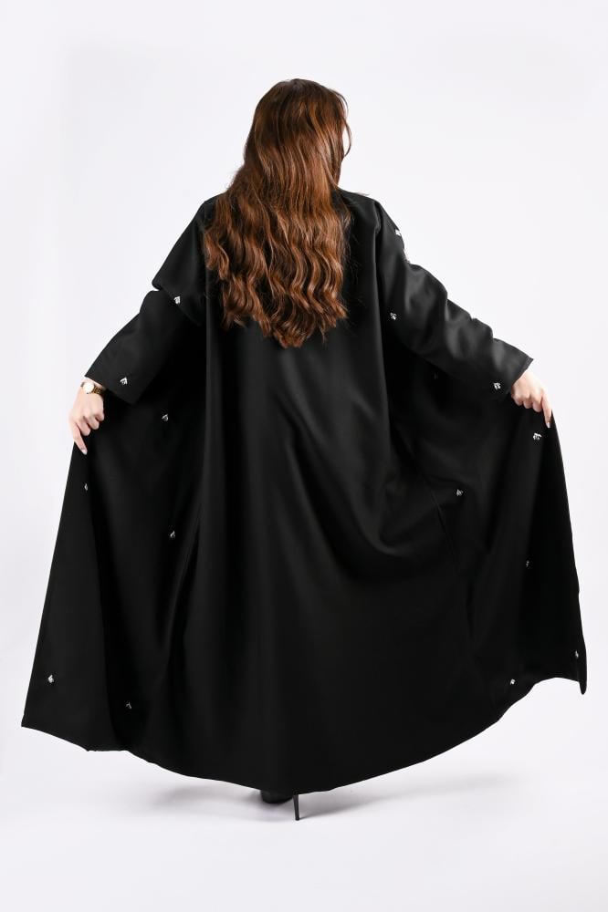 السعر شامل الضريبةرقم المنتج : 2800الإضافات : تطريز يدوي منثور فضي وجيوب مخفية.نوع العباية : نص كلوشنوع الكم : صغير.نوع القفلة : لف.نوع القماش : كريب وبطانة ستان.اللون : اسودجدول المقاسات