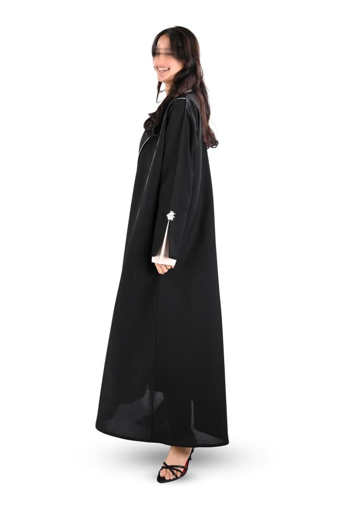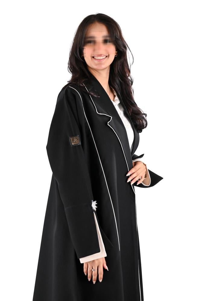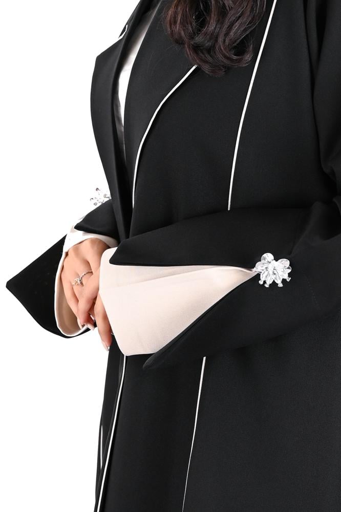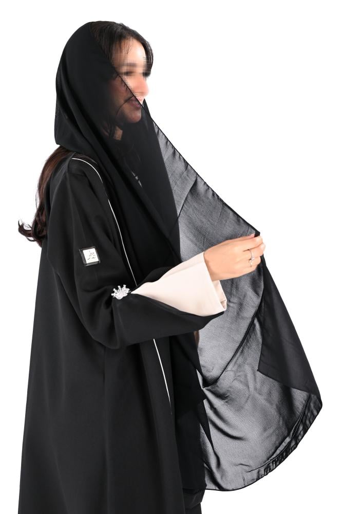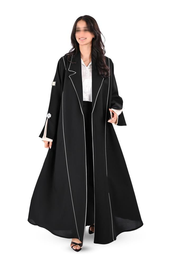 - الإضافات : اكسسوار فضي وتحديد باللون البيج