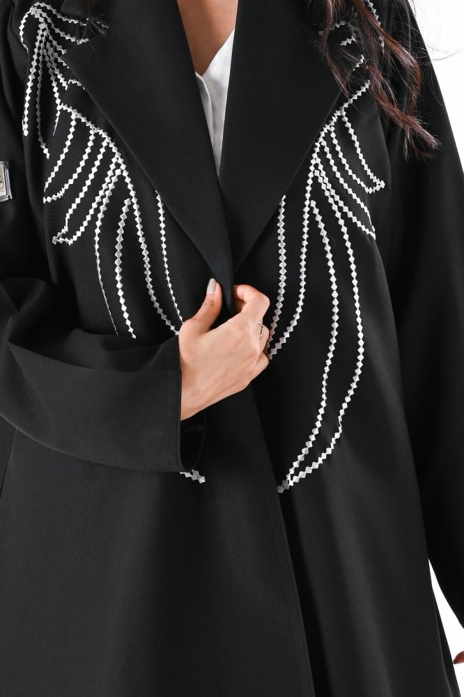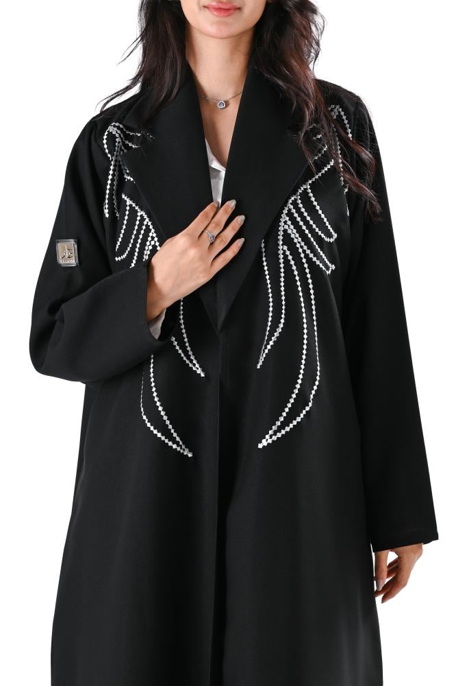 عباية كريب بتطريز ابيض