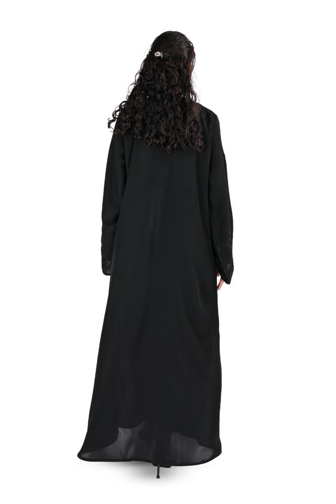 رقم المنتج : 6615الإضافات :تطريز اسود على الكم.نوع الكم : مربع.نوع القفلة : طقطق.نوع القماش : كريب.قصة العباية: استريت اللون : أسود.