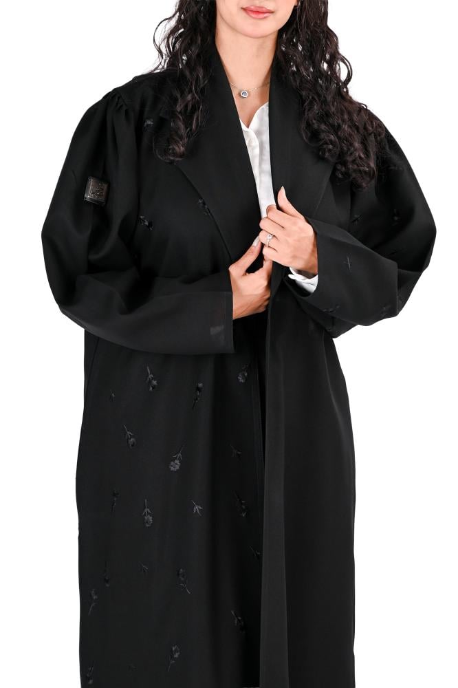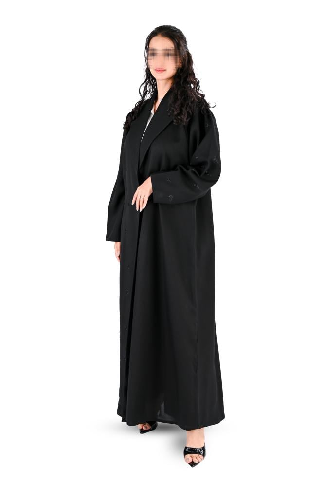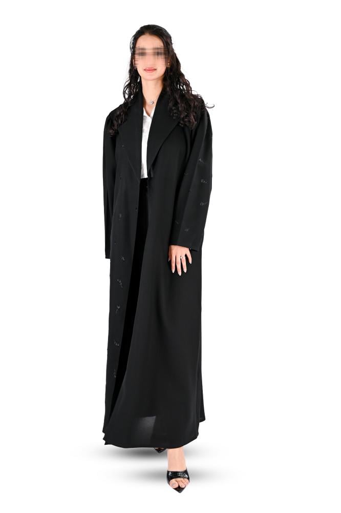 - الإضافات :تطريز اسود من الامام والكم.
