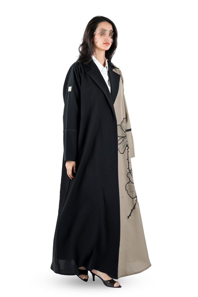 السعر شامل الضريبةرقم المنتج : 6648الإضافات : تطريز على الجنبنوع الكم : صغير.نوع القفلة : لف.نوع القماش : كريب.اللون : اسود وبني