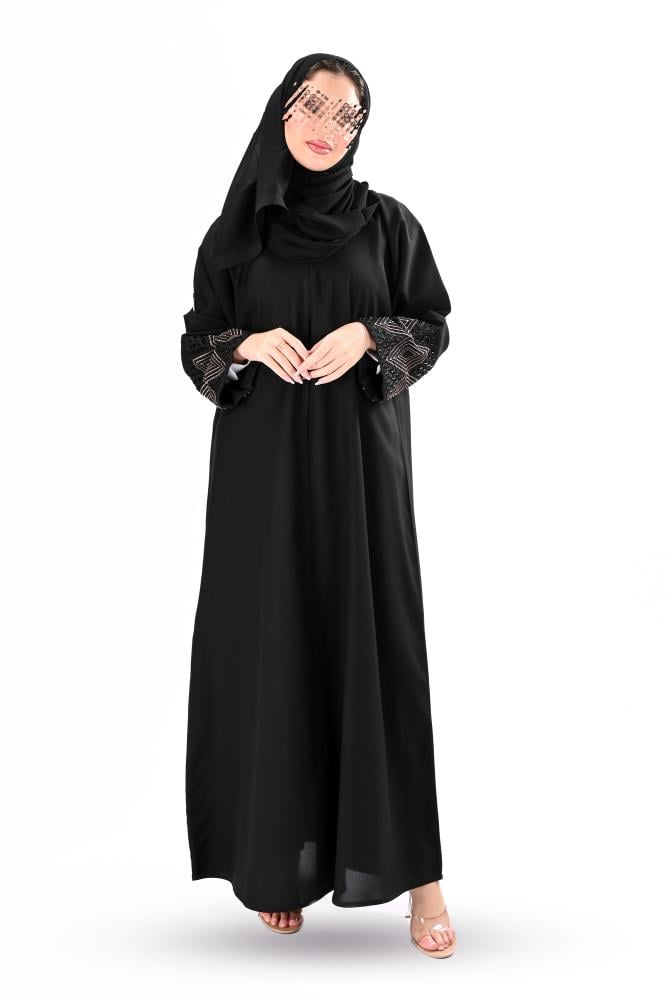 عباية كريب بتطريز يدوي اسود مع نحاسي