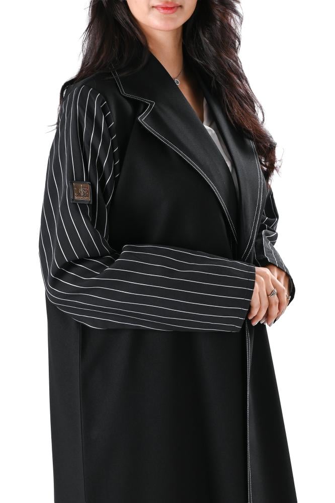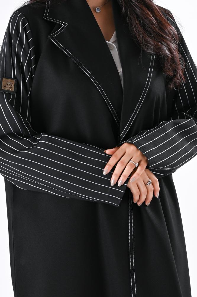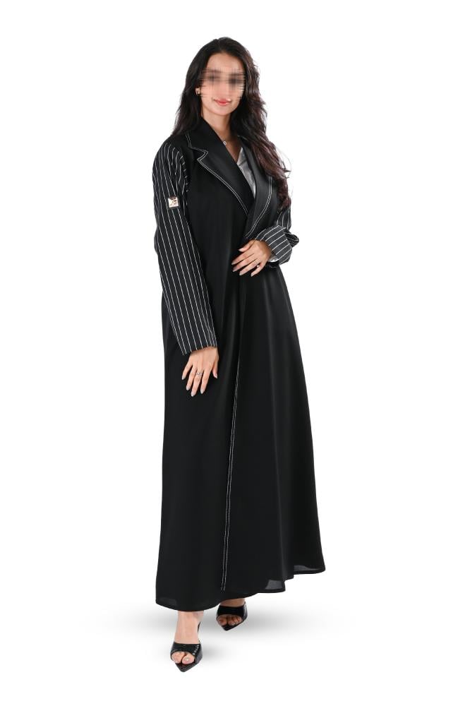 عباية كريب بقماش مقلم اسود