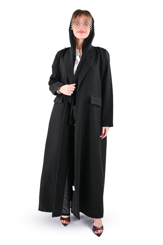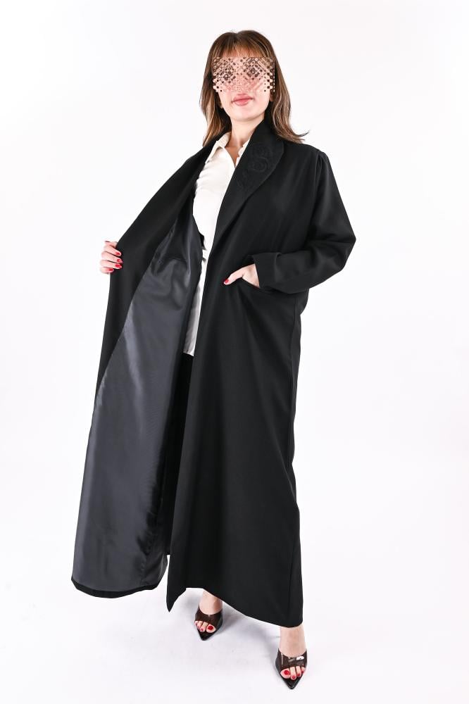 - الإضافات : تطريز ورد باللون الاسود بإضافة جيوب