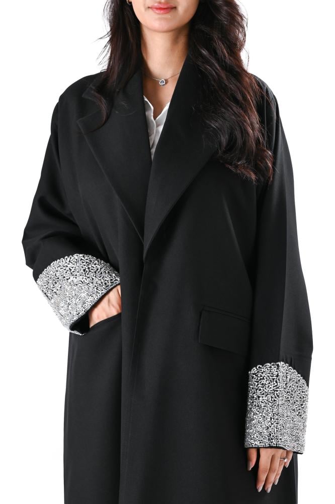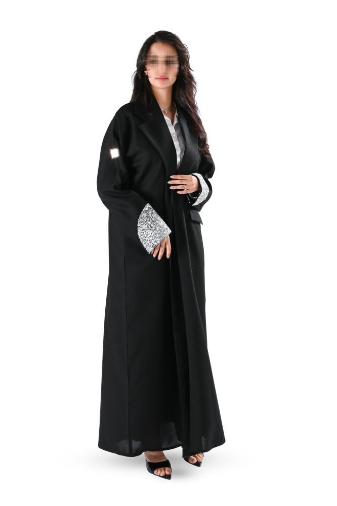 - الإضافات :شك يدوي فضي على الاكمام وجيوب.