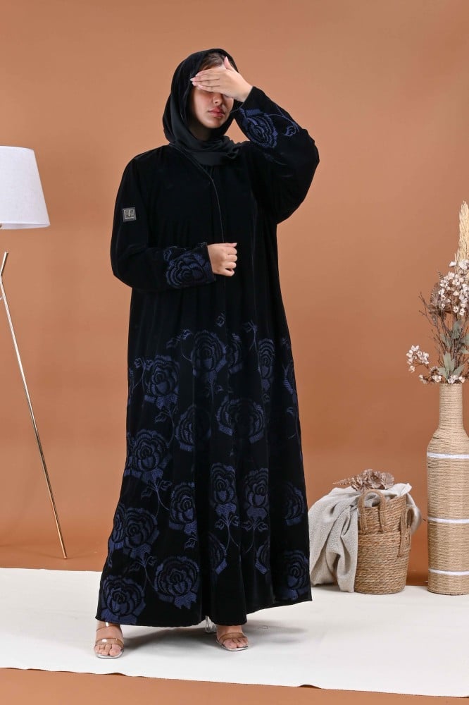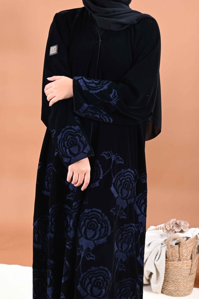 رقم العباية : 2576الإضافات: تطريز كحلي على الاكمام واسفل العبايةنوع الكم : صغيرنوع القفلة : طقطق.القماش : مخمل.اللون : اسودطرحة مجاناً مع كل عبايةجدول المقاساتِ