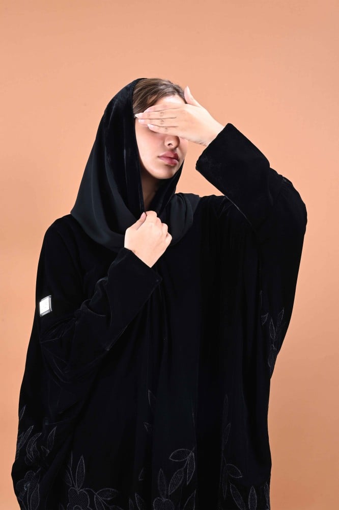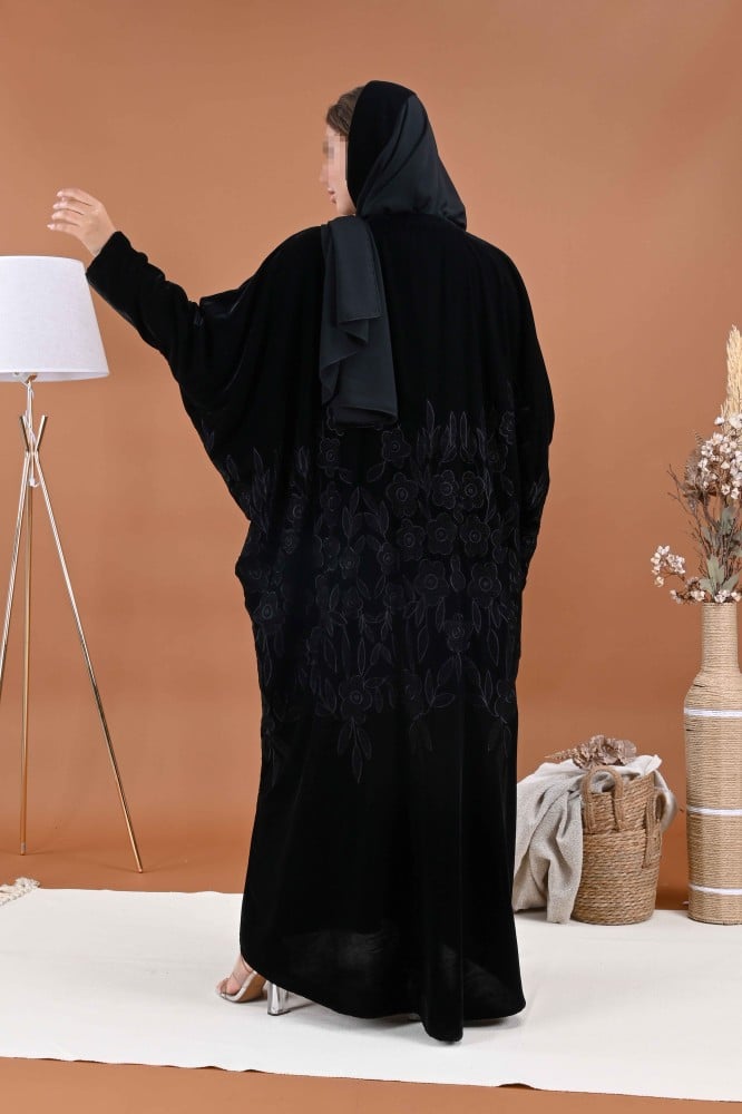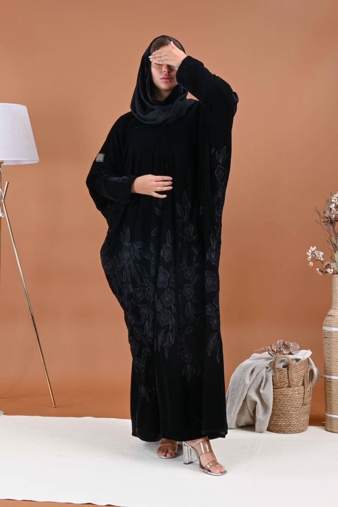 رقم العباية : 2579الإضافات: مشلح وتطريز اسود نوع الكم : صغيرنوع القفلة : طقطق.القماش : مخمل.اللون : اسودطرحة مجاناً مع كل عبايةجدول المقاساتِ