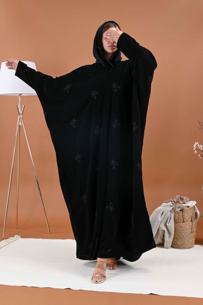 رقم العباية : 2583الإضافات: مشلح بتطريز يدوي منثور نوع الكم : صغيرنوع القفلة : طقطق.القماش : مخمل.اللون : اسودطرحة مجاناً مع كل عبايةجدول المقاساتِ