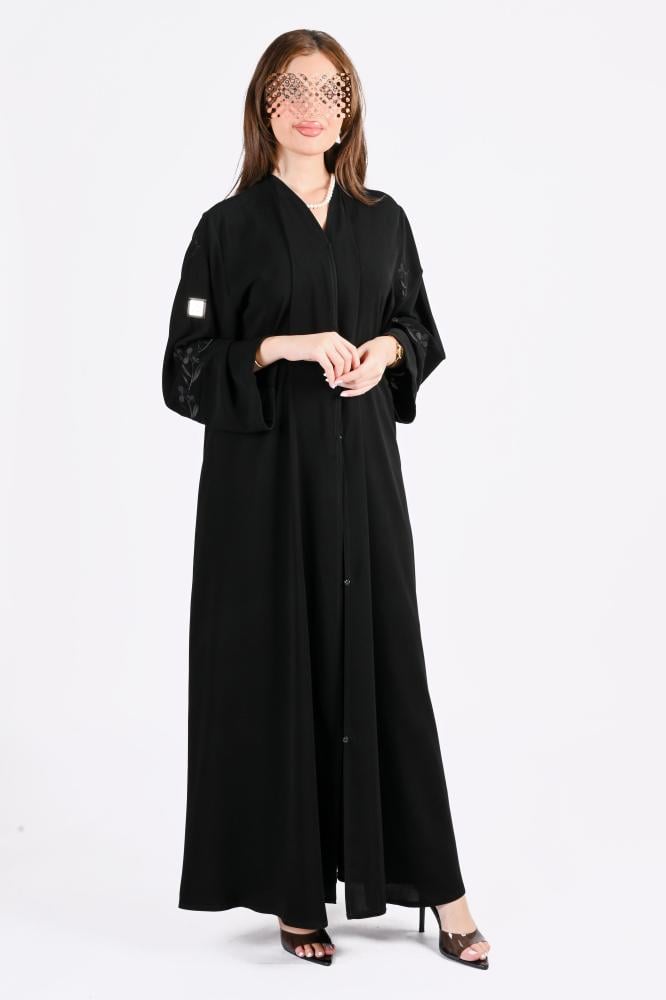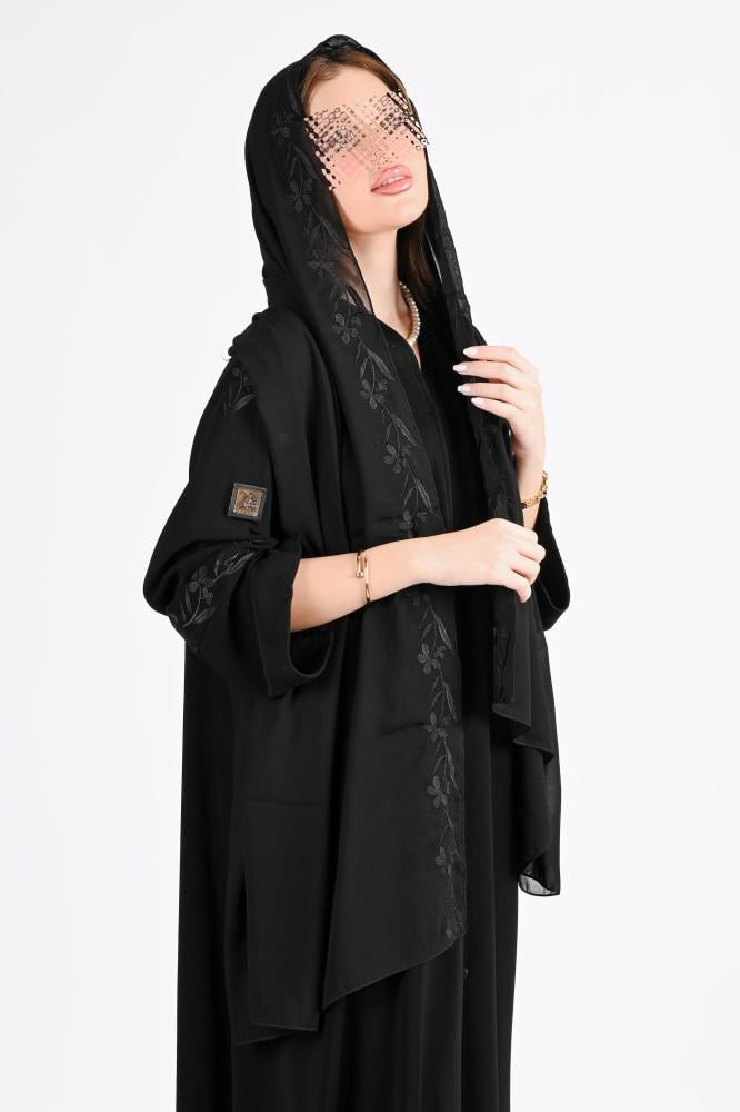 عباية كريب بتطريز أسود