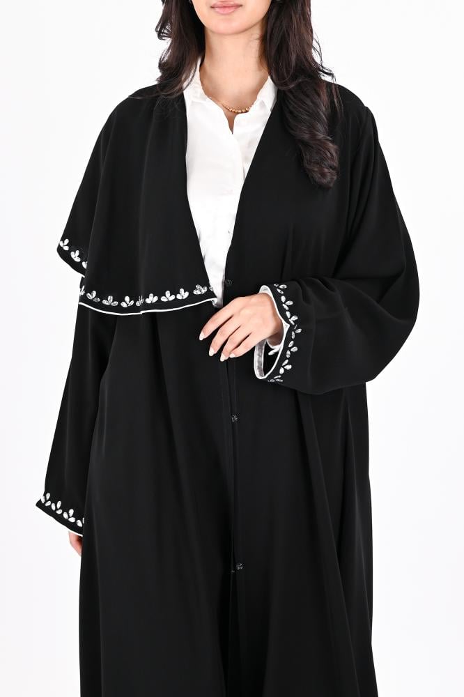 رقم المنتج : 2872الإضافات : شك يدوي فضينوع العباية : كلوشنوع الكم : صغير.نوع القفلة : طقطق.نوع القماش : ملكي.اللون : اسود