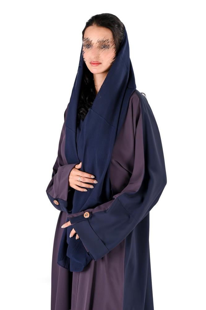 رقم المنتج : 6579نوع العباية : ربع كلوشنوع الكم : مربع.نوع القفلة : لف.نوع القماش : نواعم.اللون : موف و كحلي.